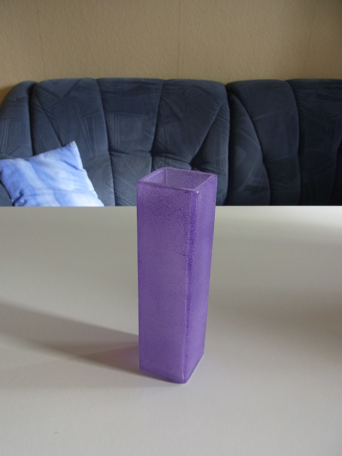 für jemanden, der lila sehr gern mag, habe ich diese Vase lila bemalt.